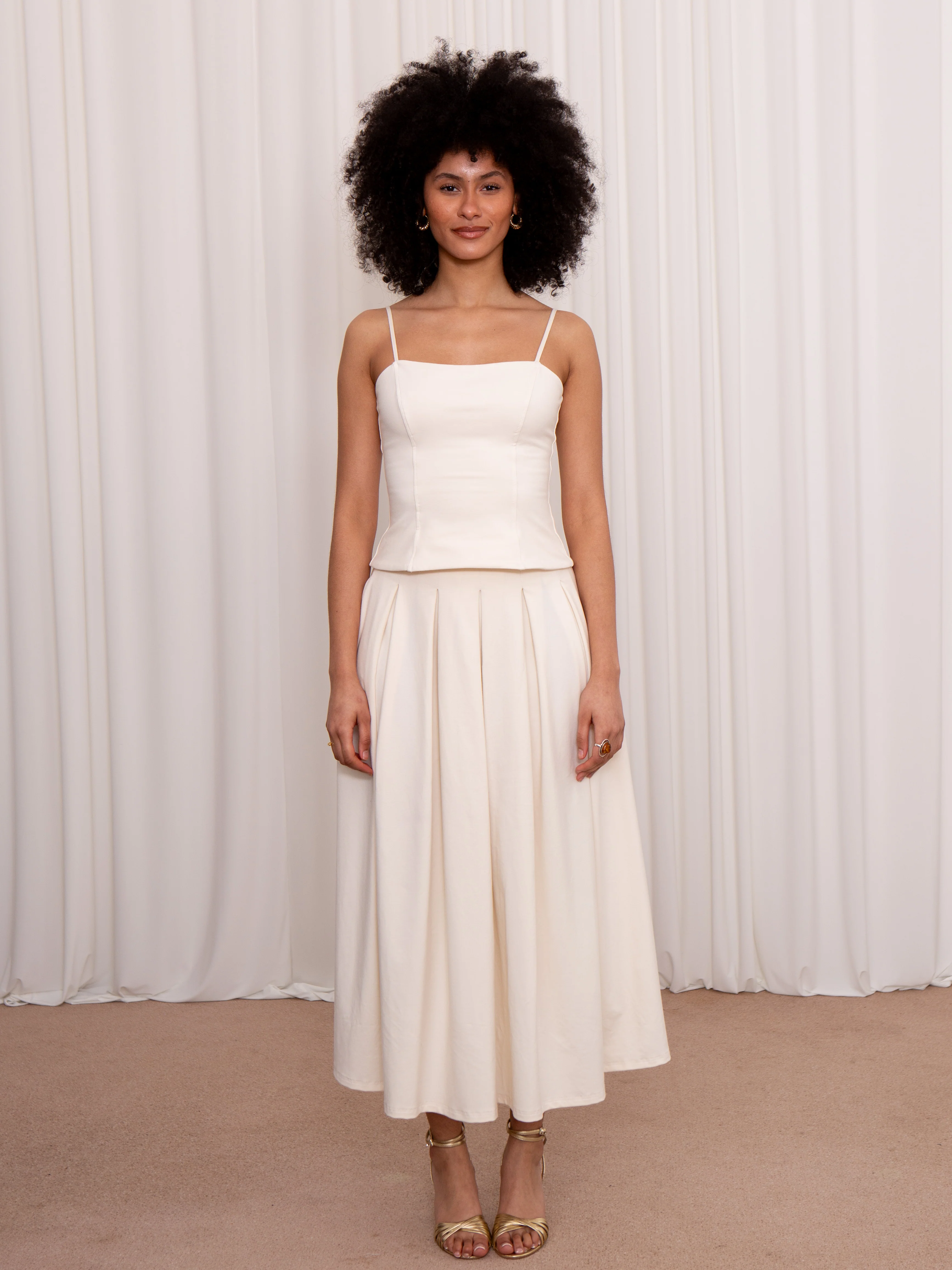 Fletcher has the deepest of pleats for a skirt full of volume. Not only does this mean it swishes and sways with the most beautiful movement, it ensures coverage too. Functional and fantastical. As always there are hidden pockets, because where we can we will. Plus an elasticated waist for flexibility and comfort.