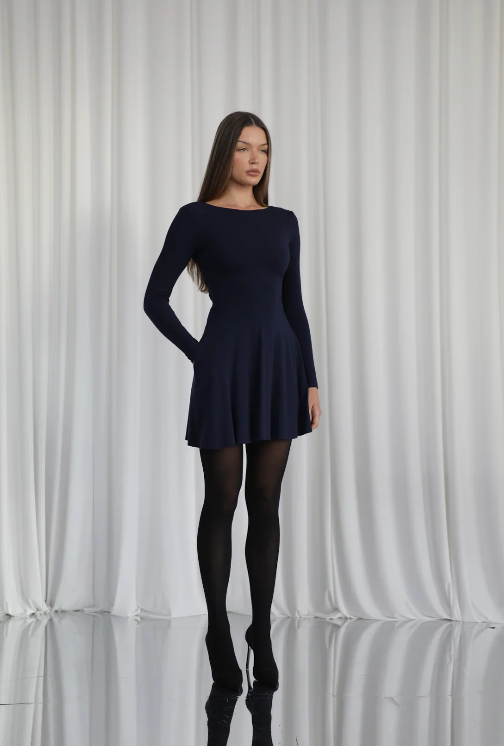 Versatility is at the heart of this design. It’s reversible, so you can choose between a soft v-neckline or a more casual boat neck, and the corset waist ties allow you to cinch the silhouette to fit you perfectly. Plus, we’ve hidden generous pockets in the playful mini skirt so you always have somewhere to put your essentials.